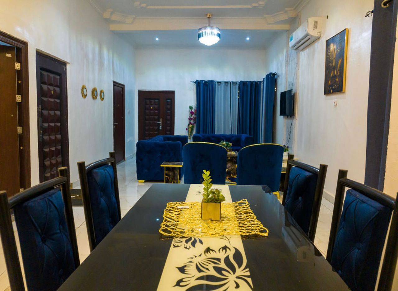 Stylish interiors with modern amenities, including a cozy living area, a comfortable bed, and a functional party area. Situated in the heart of Accra, you're just minutes away from key attractions, dining, and transport links.